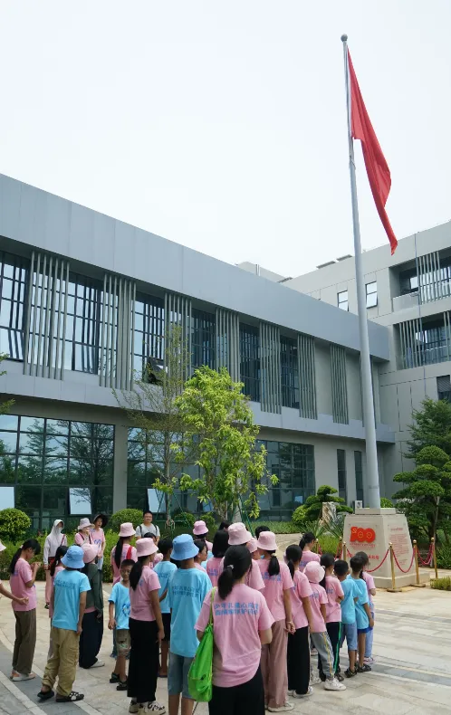 紧接着,孩子们来到了建党百年庆典红旗——070号红旗前。讲解员讲述了PA视讯药业集团与庆典红旗的深厚渊源。孩子们听得津津有味,眼中闪烁着对党和国家的热爱与敬仰。